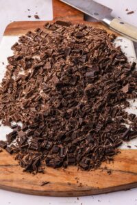 - Finely chop both the milk and dark chocolate into very small chunks. Place both in a large mixing bowl.150 grams Menier 70% Dark chocolate, 150 grams Menier Milk Chocolate