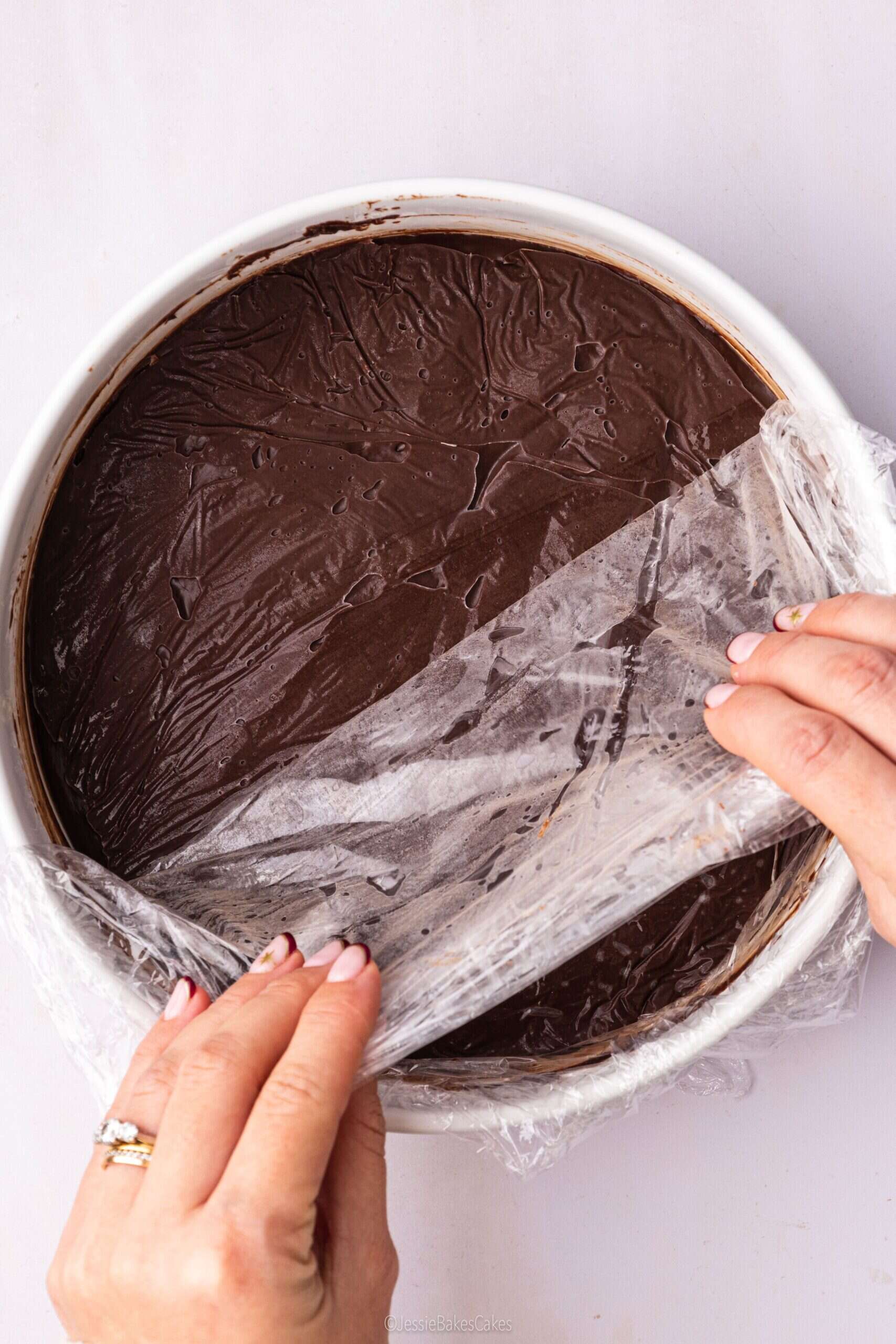 - Cover the surface of the ganache with clingfilm and wrap it around the bowl. Chill in the fridge for 2 hours, or until firm enough to scoop.