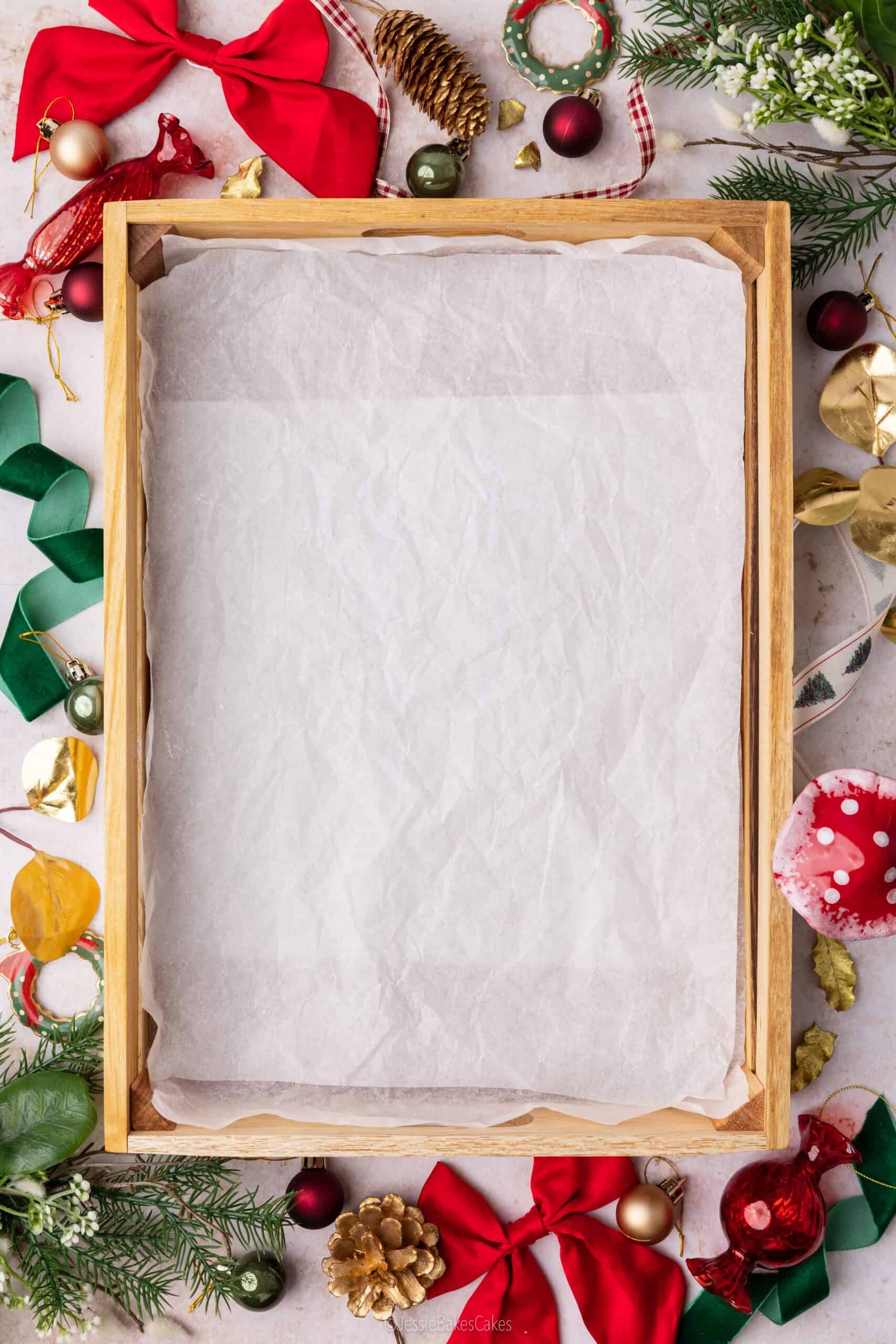 • Line your box with a few sheets of greaseproof paper or tissue paper.