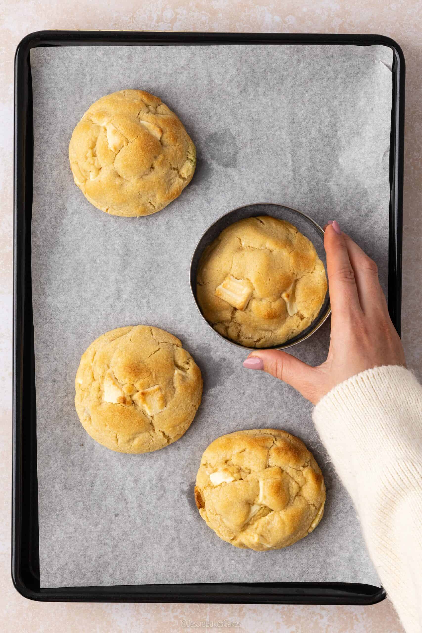 - Large round cookie cutter – Used straight after baking to gently shape cookies into neat, perfectly round circles.